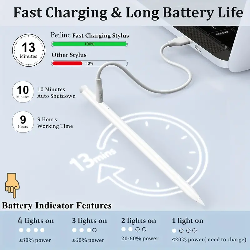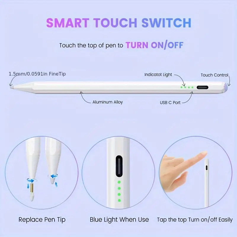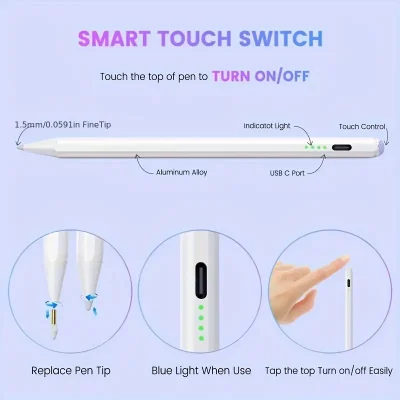 This USB rechargeable stylus provides long-lasting power and easy charging via USB, ensuring you’re always ready to create. With an operating voltage of ≤36V, the stylus is equipped with high-quality electronic components for smooth, responsive use.